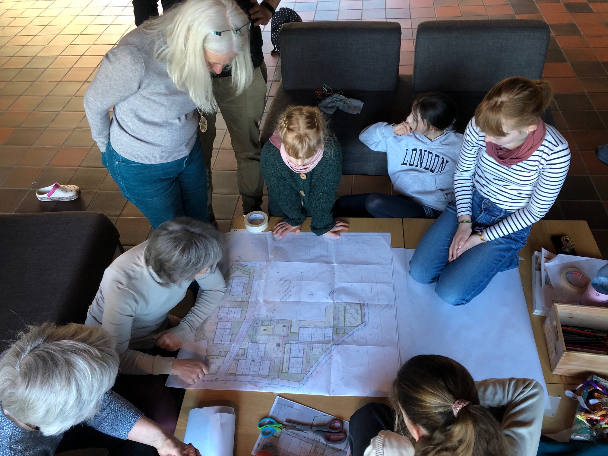 Natürlich machen wir uns bereits jetzt Gedanken über die Gestaltung der Freiflächen und des Gemeinschaftsgartens.  Was wünschen sich die Kinder? Bei der jährlichen Wochenendklausur der Hausgemeinschaft GuteWeGe bringen sie ihre Ideen ein (Foto: ?).