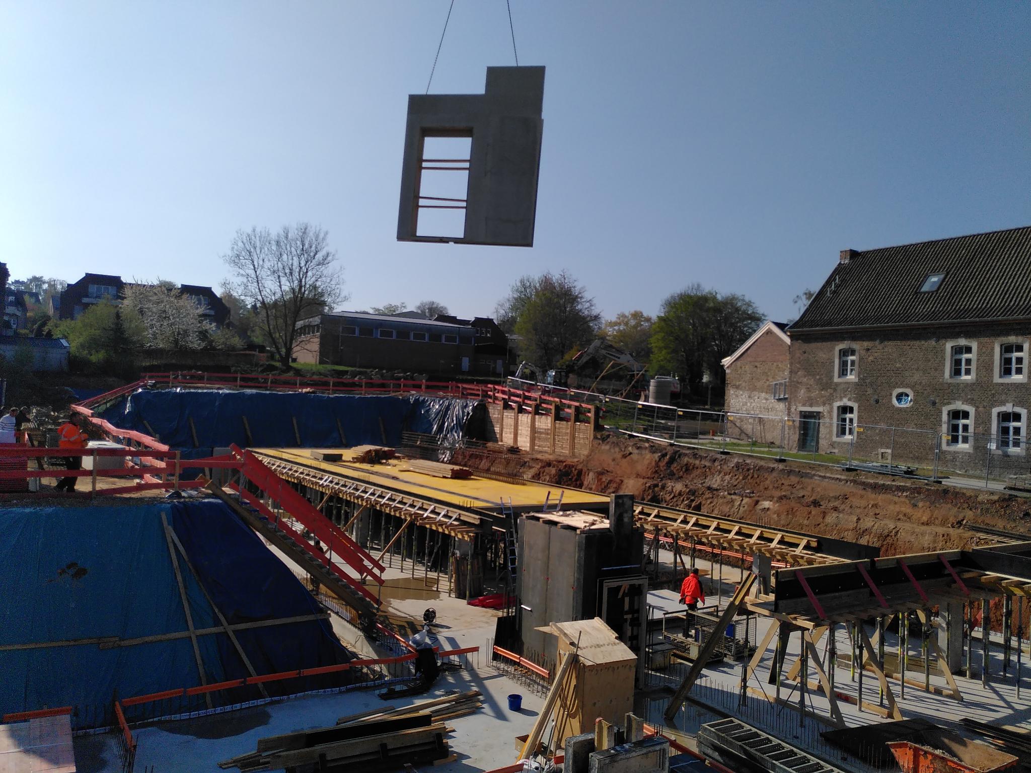 Die Decke der Tiefgarage wird eingeschalt und die Wände fliegen herein (Foto: Andrea Kranefeld).